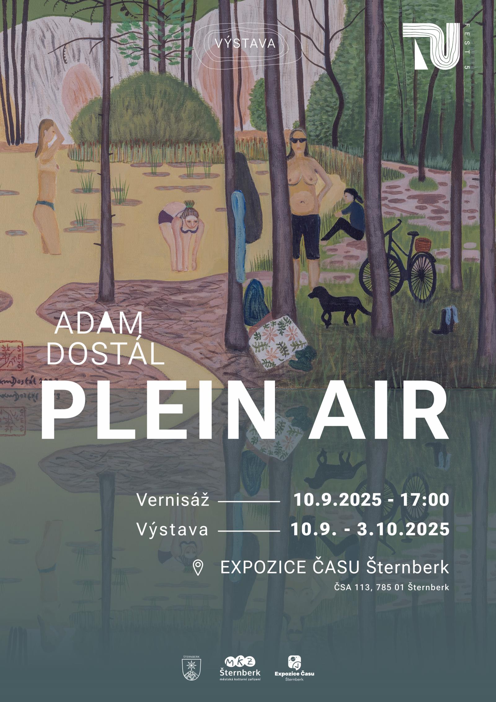 Srdečně zveme na vernisáž výstavy obrazů Adama Dostála PLEIN AIR do Expozice času. Výstava navazuje na letošní přehlídky autorovy tvorby v Uničově (Městská galerie) a Olomouci (Galerie Ateliér KD) a trvá souběžně s prezentací ve Staré Vsi u Rýmařova (Penzion Albert). Jak název napovídá, šternberská výstava je zaměřena na obrazy malované venku - bez využití skic, fotografických předloh a dodatečných ateliérových úprav. Vznikly během uplynulého čtvrtstoletí v krajině Nízkého Jeseníku, Hostýnských vrchů, Slovácka a zatopených lomů Moravského krasu. Výstava je k vidění do 3. října 2025.